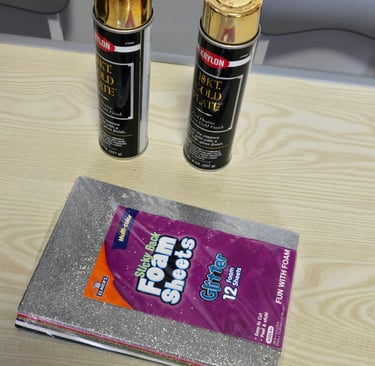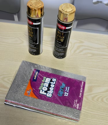 Kings Scepter: To make this scepter I used a dowl rod, gold spray paint, some glitter foam sheets and some stick-on jewels I had from previous lessons. You could use any kind of glitter paper to make this work or gold paint. I like to be creative and use whatever I have on hand.